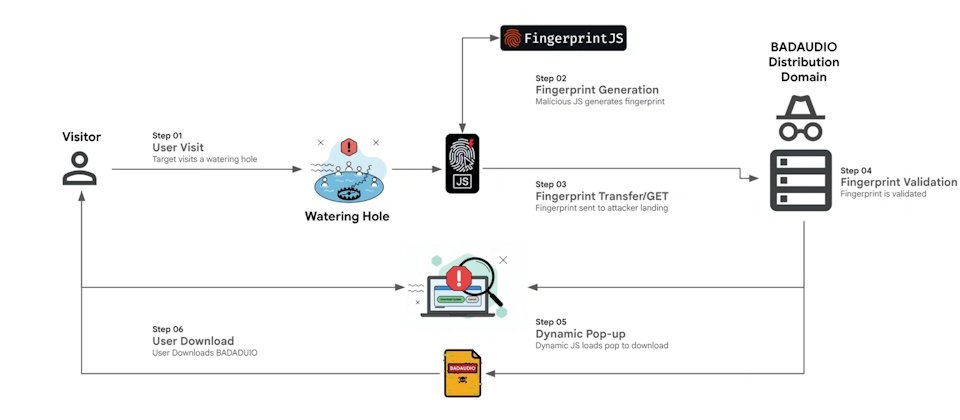 一旦此程式庫在客戶網站運作,就會動態載入合法的jQuery與FingerprintJS2程式庫,並收集網站使用者的特徵,並將相關資料回傳給攻擊者,若是成功,C2就會根據回應資料欄位中的URL,動態載入一連串指令碼,將使用者重新導向BadAudio相關網頁。為了隱匿蹤跡,APT24不僅將JavaScript指令碼進行高度混淆處理,並刻意埋藏在特定JSON檔案,再透過另一個JavaScript檔案載入及執行。至於APT24如何取得這家公司的初始入侵管道,GTIG並未說明,也沒有公布這家公司身分,但強調他們已採取整治活動,向受害公司與下游的網站用戶通報,並提供細節與資料,讓他們能夠防範相關威脅。